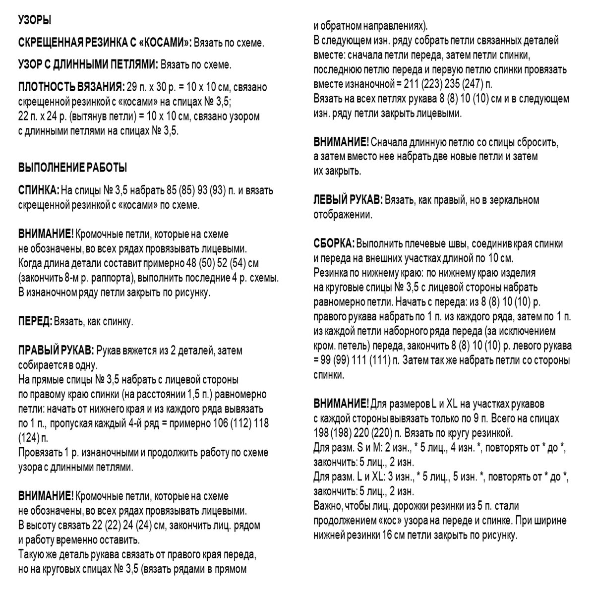 Для вязания нам потребуется 5 (5) 6 (7) 8 мотков — на размеры XS/S (S/M) M/L (L/XL) XL/XXL соответственно — пастельно-розовой пряжи: 50% лён, 50% хлопок; 50 гр — 125 м. Спицы № 3 и 3,5, а также круговые спицы № 3 длиной 40 см.