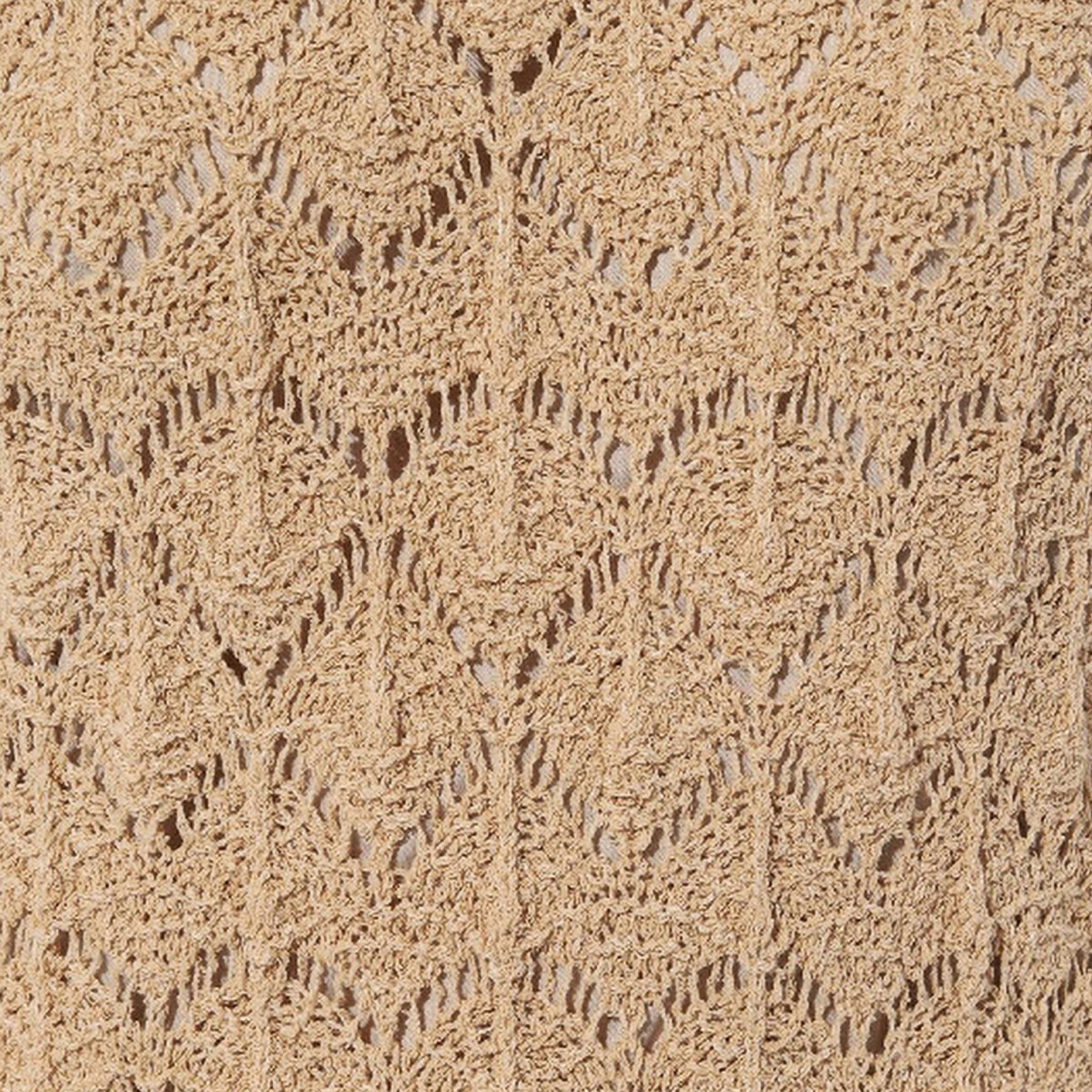 Длинное платье оттенка капучино выполнили из ажурного фактурного трикотажа на основе дышащего мягкого хлопка. Чтобы модель с лифом, стилизованным под майку с глубокими проймами, комфортнее садилась по фигуре и не вытягивалась, в пряжу добавили шелковистые волокна полиэстера и прочный нейлон. Такое изделие одинаково хорошо сочетается и с босоножками на шпильке, и с сандалиями на тонкой подошве: и в том, и в другом случае получится создать женственный образ.