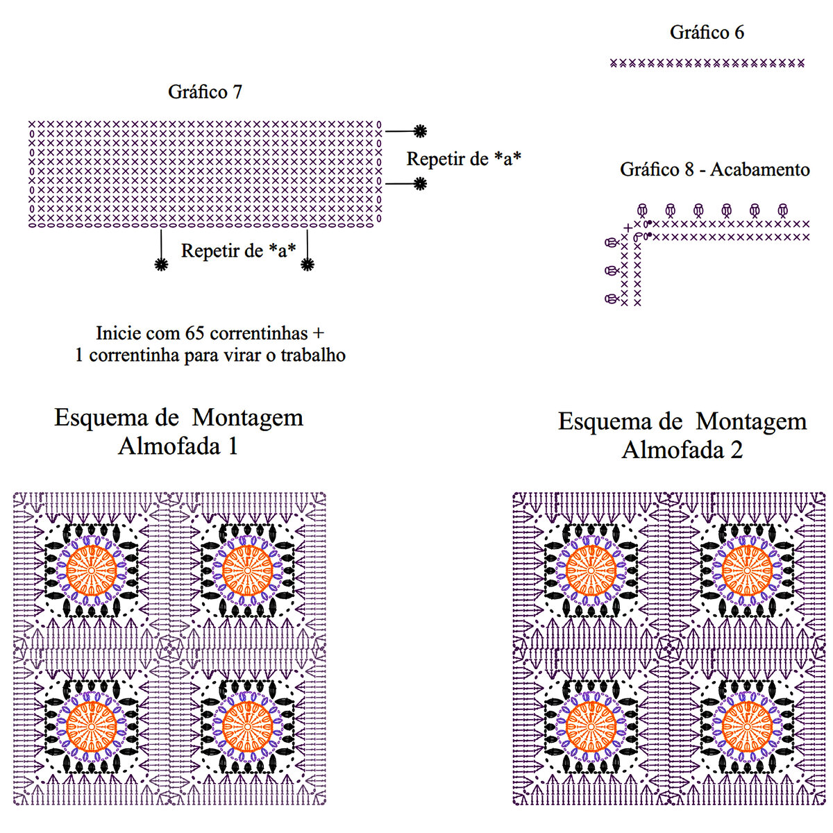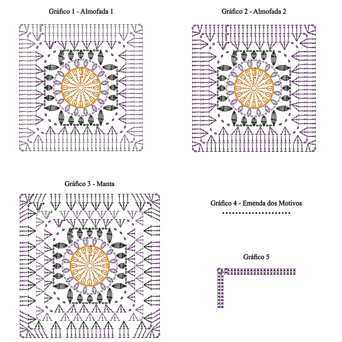 Для вязания нам потребуется по 5 мотков сиреневой и белой пряжи, а также 3 мотка молочной пряжи и 2 мотка жёлто-оранжевого меланжа — на размер подушки 50 х 50 см и пледа 150 х 70 см: 100% мерсеризованный хлопок; 100 гр — 115 м. Крючок № 3,5-4.