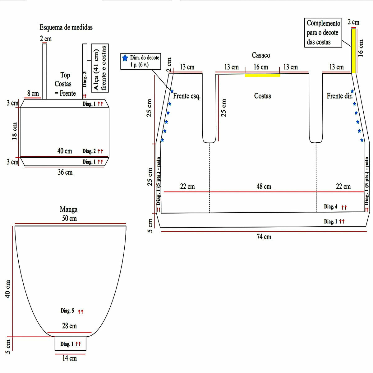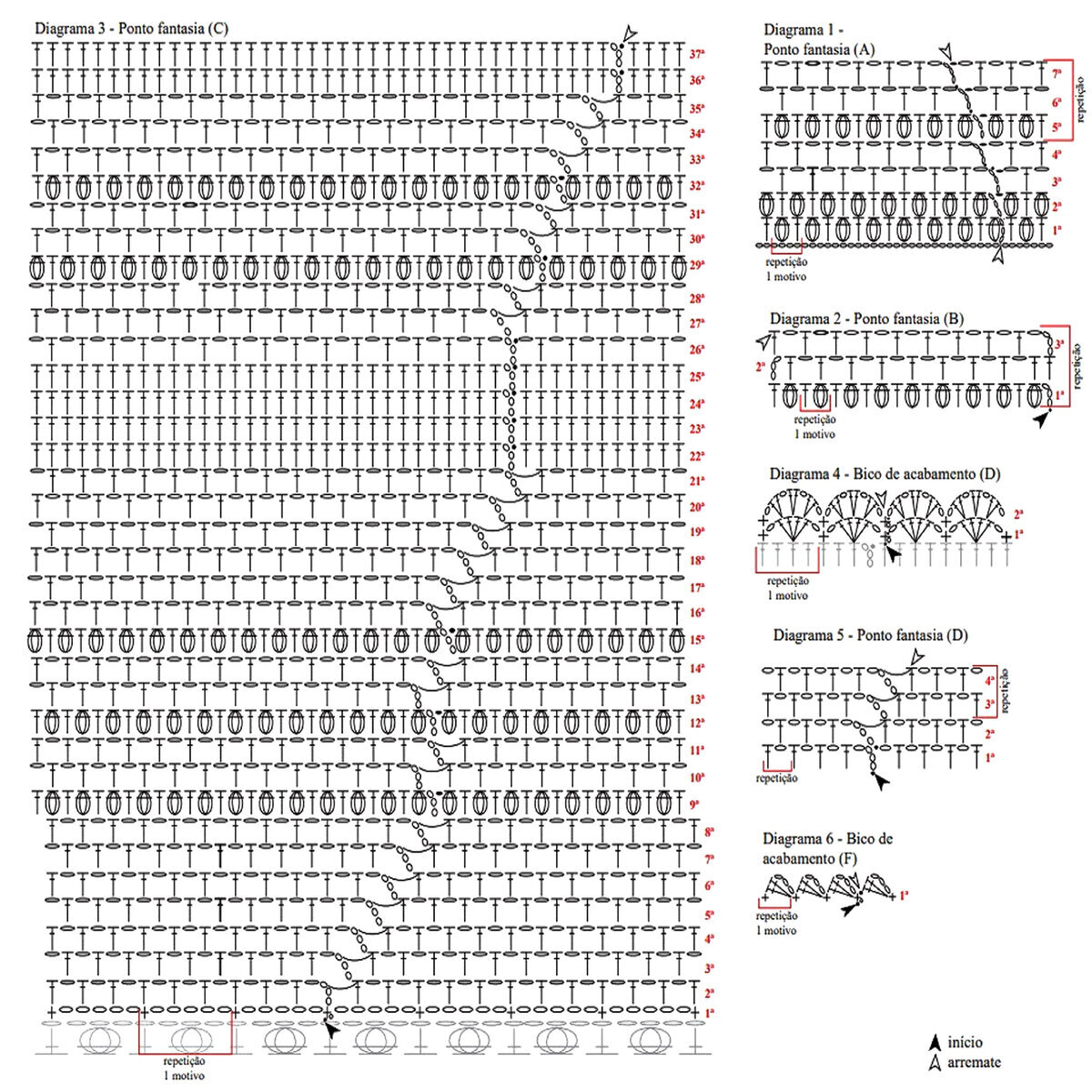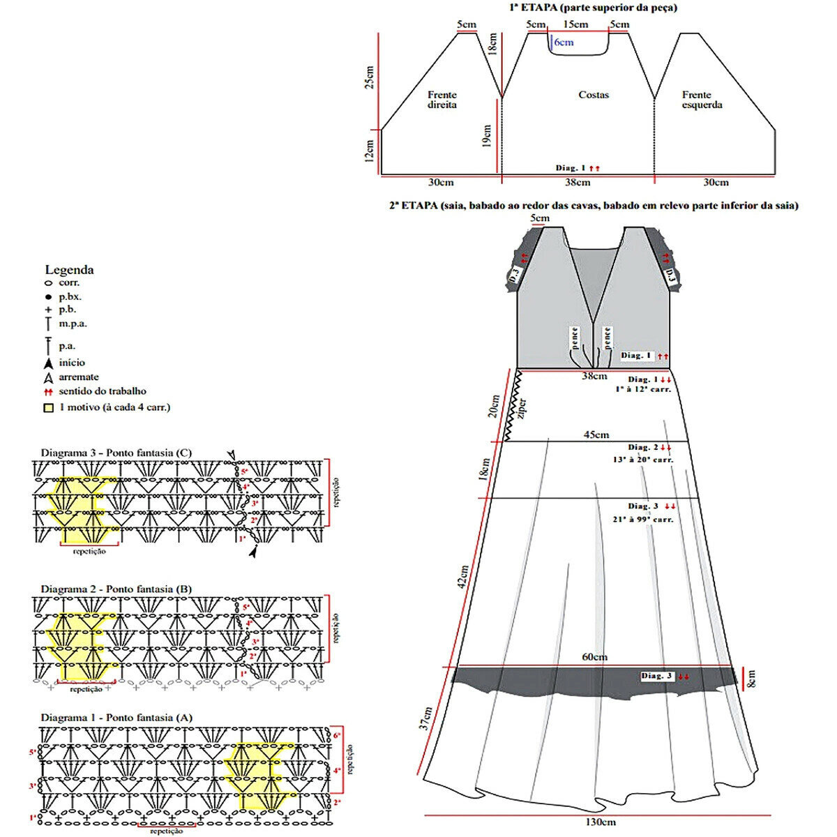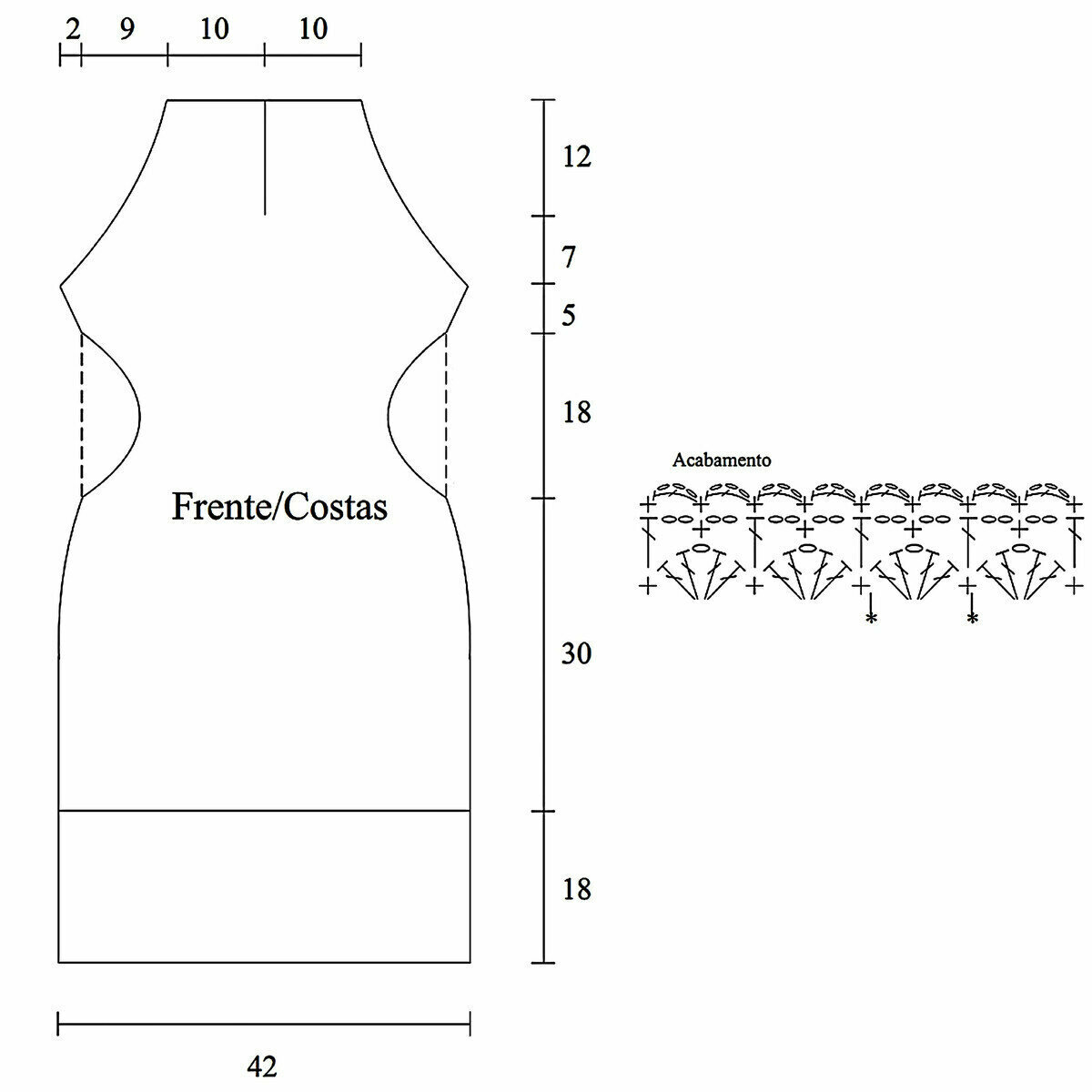 Отрывок этого ажурного узора у нас ещё будет идти вверху на спинке топа и впереди по плечикам (после ажурного узора № 2) — с 1-го по 17-й ряды. А также на рукавах — с 21-го по 41-й ряды.