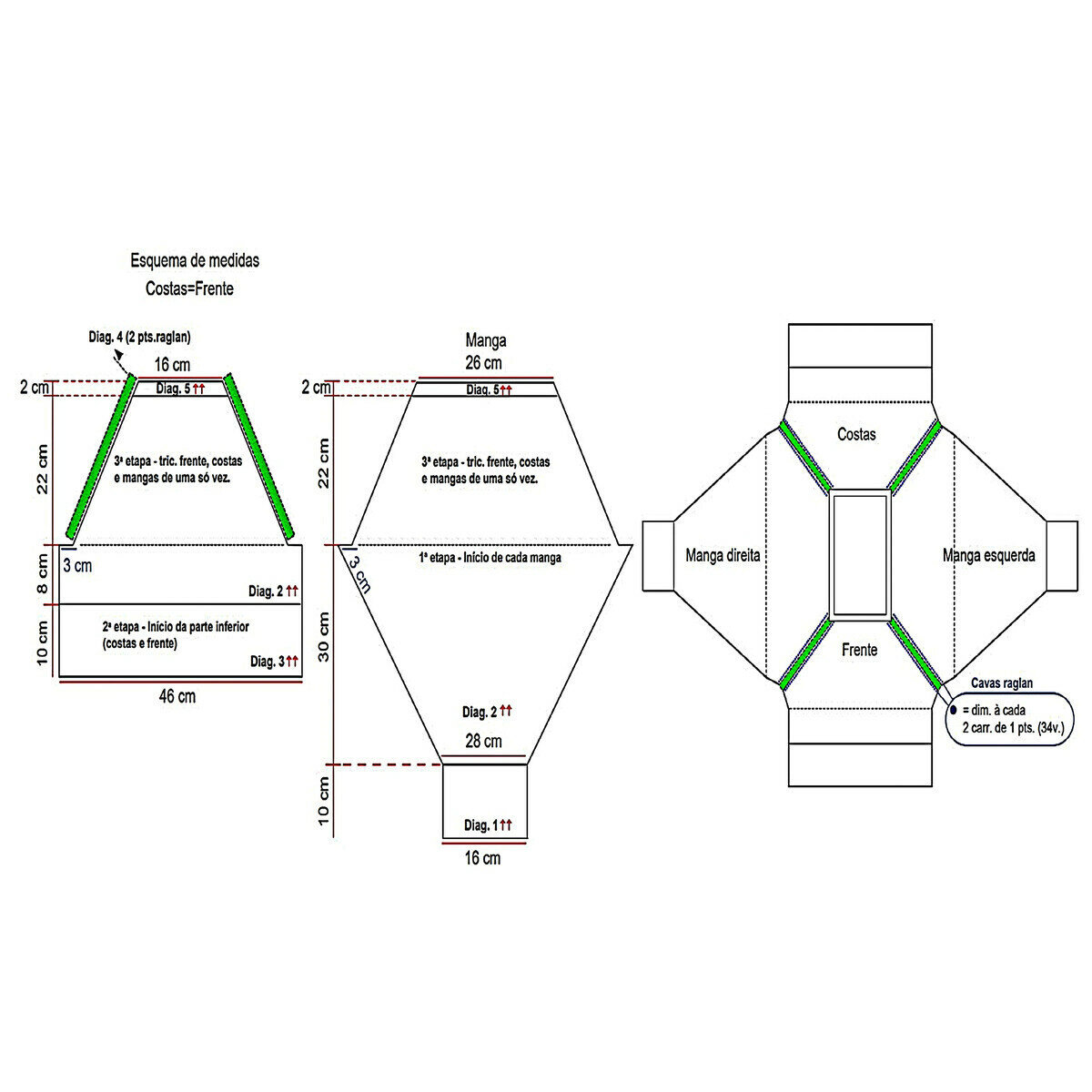 Данную модель можно связать как регланом сверху или снизу, так и поворотными рядами — каждую деталь связать отдельно, затем соединить красивым швом с помощью крючка, например.