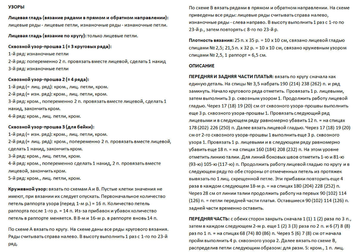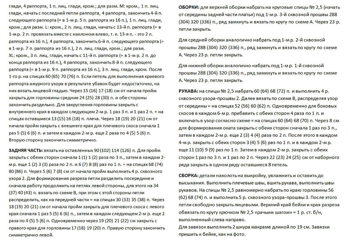 Нежная модель спицами с ажурным декольте и кокетливыми оборками-рюшами по низу. Конечно, такое платье пойдёт далеко не всем.