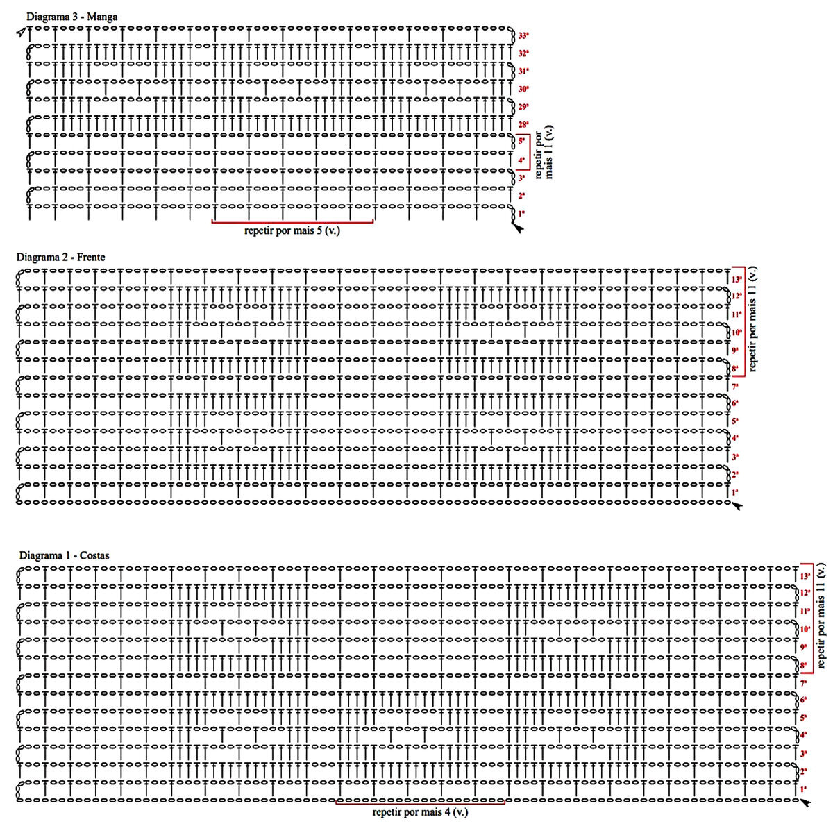 При поворотном вязании необходимо будет добавить ещё одну петлю к общему количеству раппортов и начинать ряд петлями до раппорта, заканчивая петлями после раппорта, указанными на схеме.