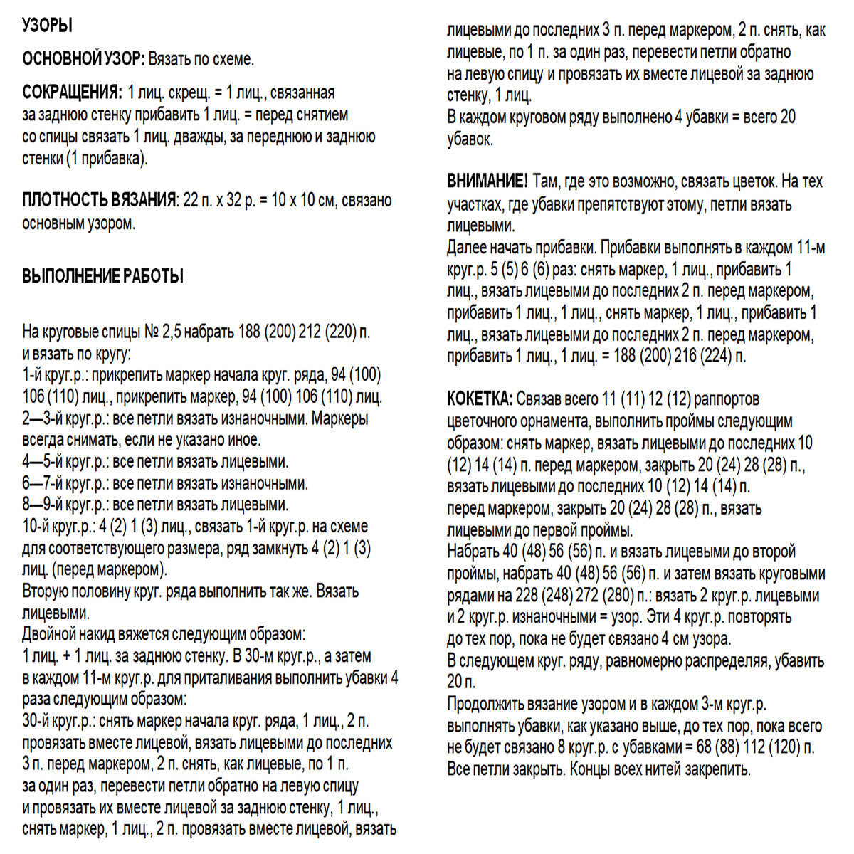 - Для большего/меньшего р-ра прибавить/убавить с каждой стороны нужное кол-во лицевых петель (из расчёта +- 1 размер: +- 2 см к переду и спинке)