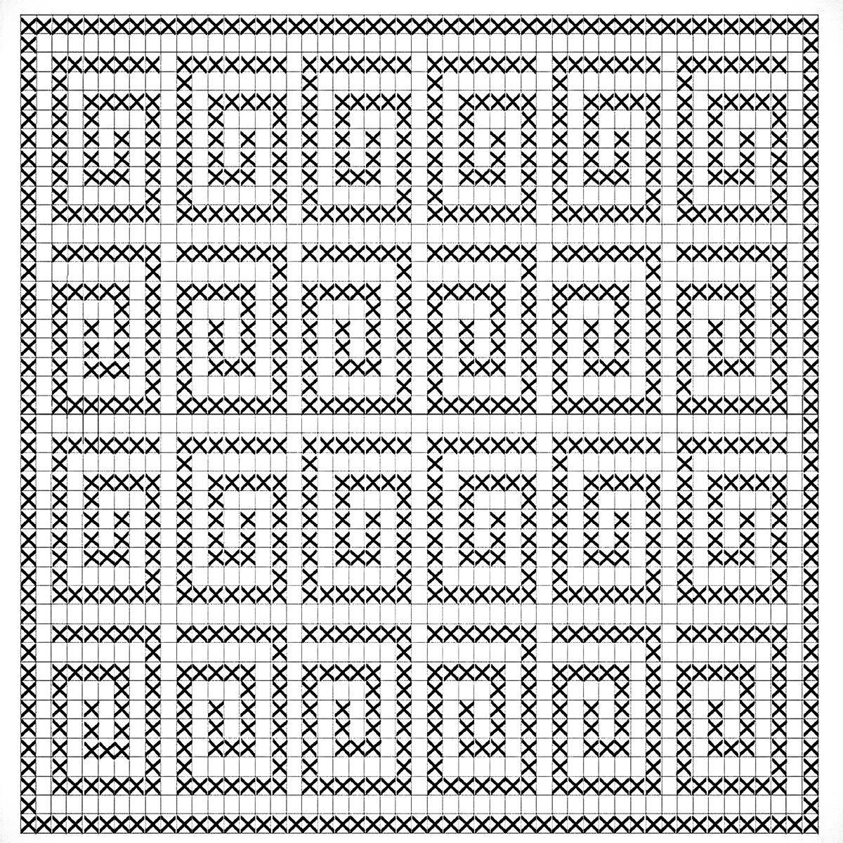 Нам понадобится 4 мотка белой и 5 мотков чёрной пряжи — на размер 140 х 80 см: 100% мерсеризованный хлопок; 100 гр — 115 м. Крючок № 4-4,5.