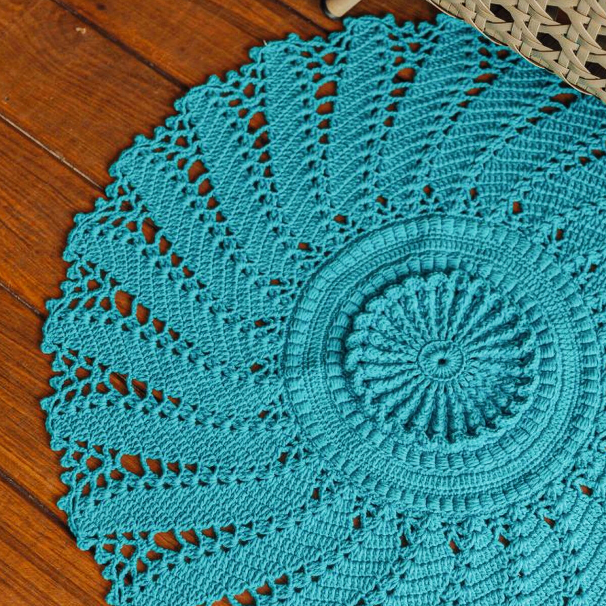 Нам понадобится 5 мотков — на размер 80 см в диаметре — светло-бирюзовой пряжи: 100% мерсеризованный хлопок; 100 гр — 115 м. Крючок № 3-3,5.