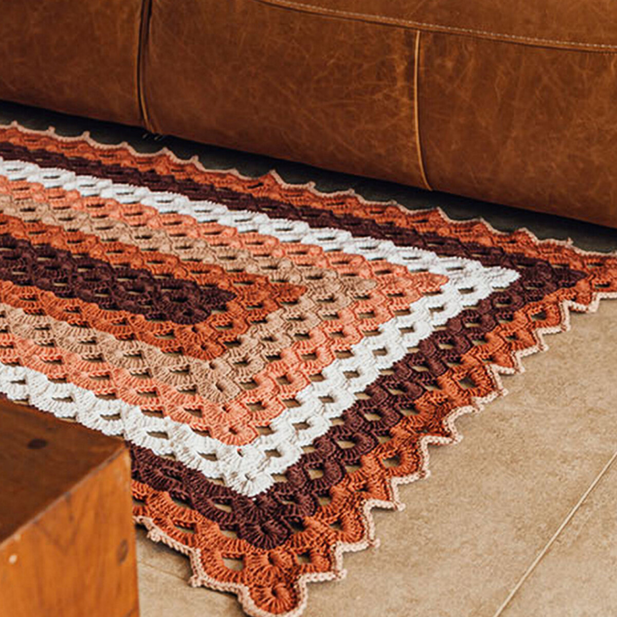 Популярность вязаных ковров с каждым годом только растёт. И неслучайно! Огромный выбор пряжи, предназначенный именно для интерьерных вещей, делает вязание ковров не только увлекательным, но ещё и практичным. Теперь вязаные ковры — это не про бесполезную роскошь, хоть и красивую. Теперь это про уют в доме, в первую очередь. Связать красивые коврики можно как «по старинке» — из 100% хлопка, из хлопка с акрилом или из чистой синтетики (акрил, полиамид, полиэстер), так и по современным правилам. В рукодельных магазинах можно без труда найти специальную пряжу-шнур, которая предназначена для вязания интерьерных вещей! Такая пряжа, во-первых, легче обычной. Во-вторых, прочнее и износоустойчивее. А в-третьих, отлично отстирывается, не теряя свою форму.
