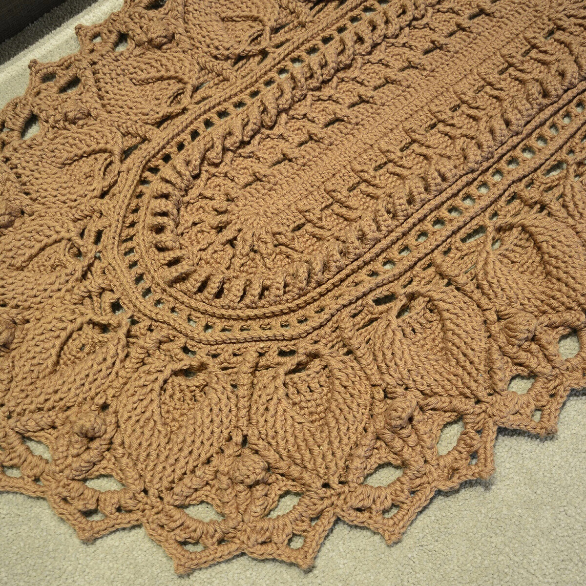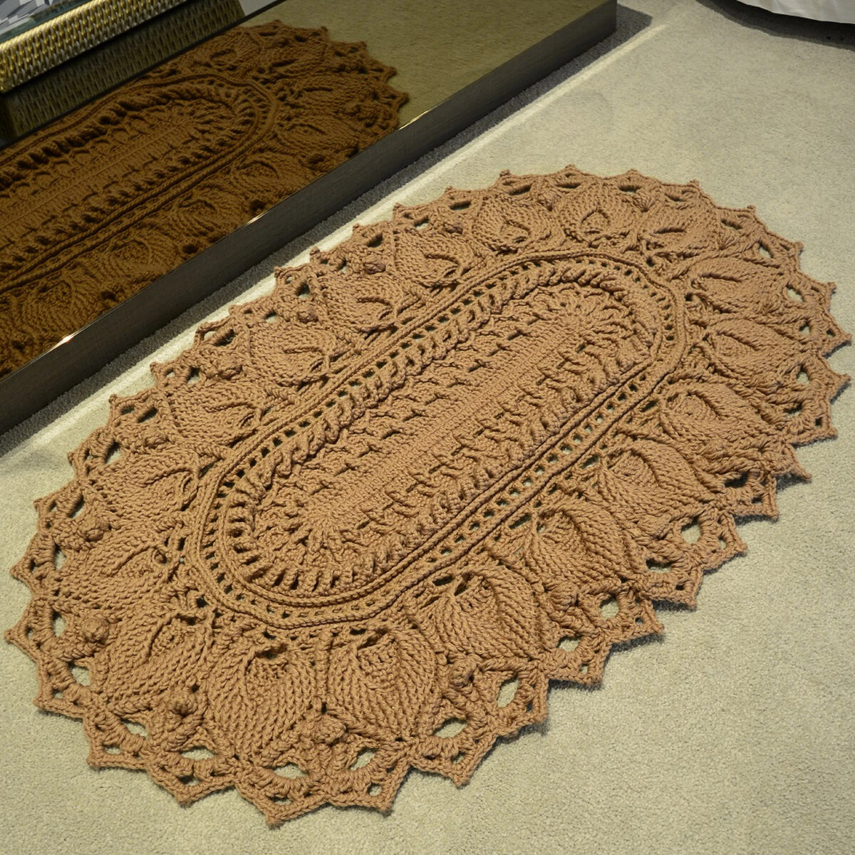 Изысканный тёмно-бежевый ковёр крючком. Такая вещь будет отлично смотреться в любом интерьере! А грамотно подобранная пряжа гарантирует вам долгую службу такого изделия.