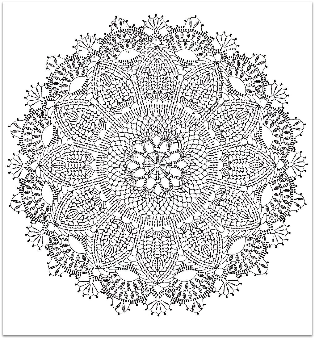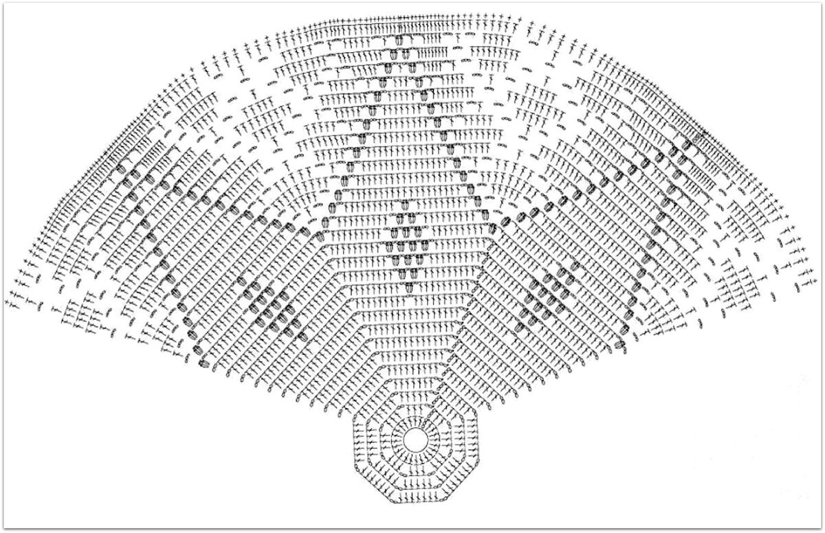 Для вязания нам потребуется около 8 мотков — на размер 110 см в диаметре — натурально-белой пряжи: 100% мерсеризованный хлопок; 100 гр — 100 м. Крючок № 4-4,5.
