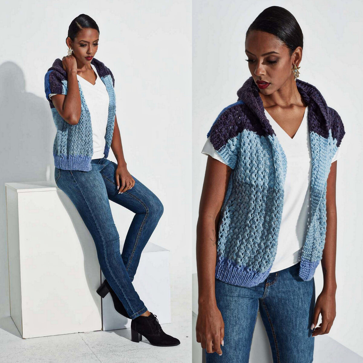 Вяжем тёплый жилет спицами.