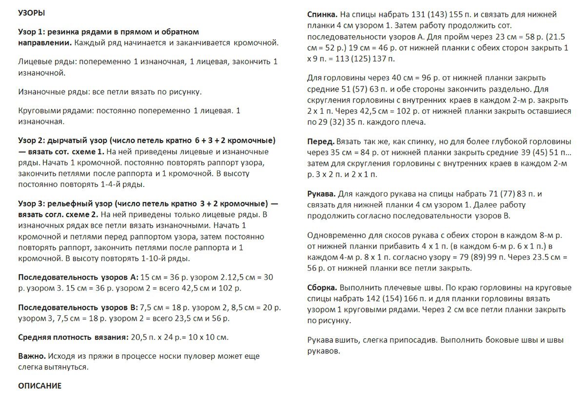 Чтобы связать этот джемпер, нам потребуется 500 (550) 600 гр — на размеры 36/38 (42) 46/48 соответственно — графитово-серой пряжи: 100% хлопок; 50 гр — 142 м. Спицы № 2 и № 2,5, а также круговые спицы № 2,5 и крючок № 2.