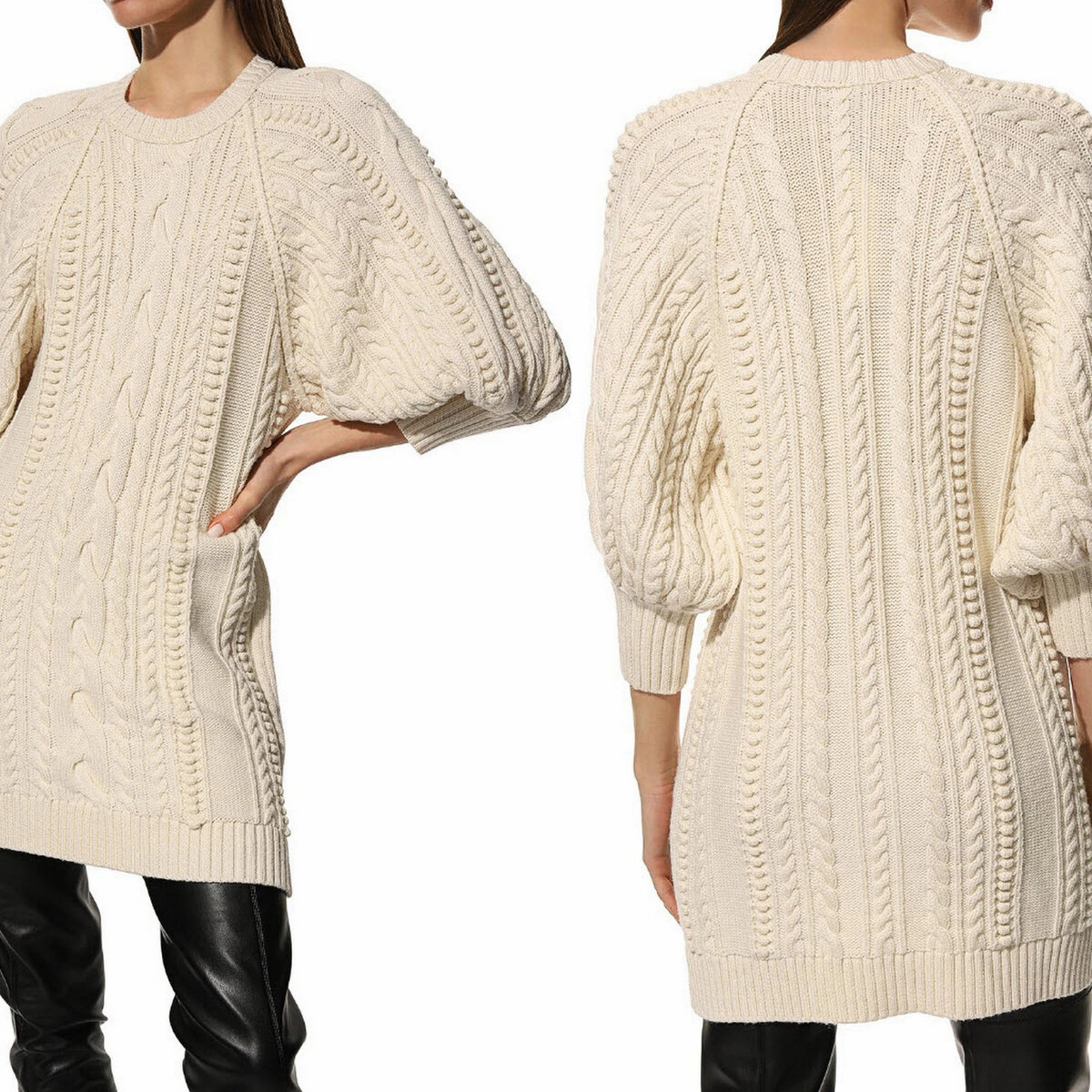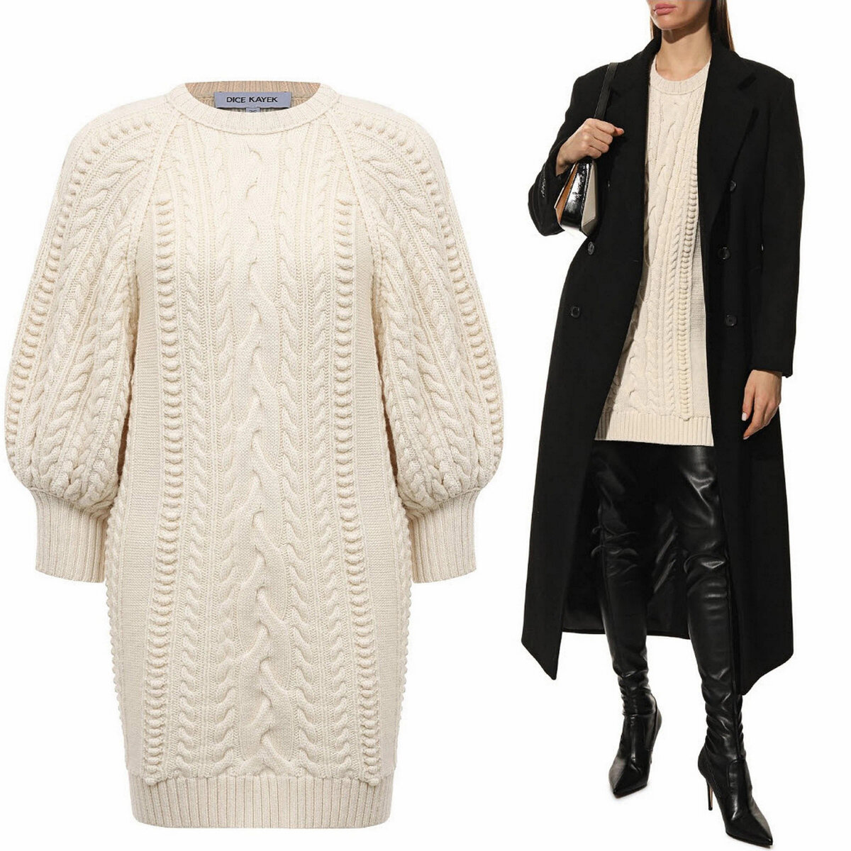 Шикарное молочное платье-свитер от французского бренда. Всё гениальное просто! Прямой фасон, простые регланные линии, широкие рукавчики, заканчивающиеся узкой резинкой. Классические косы и жгуты.