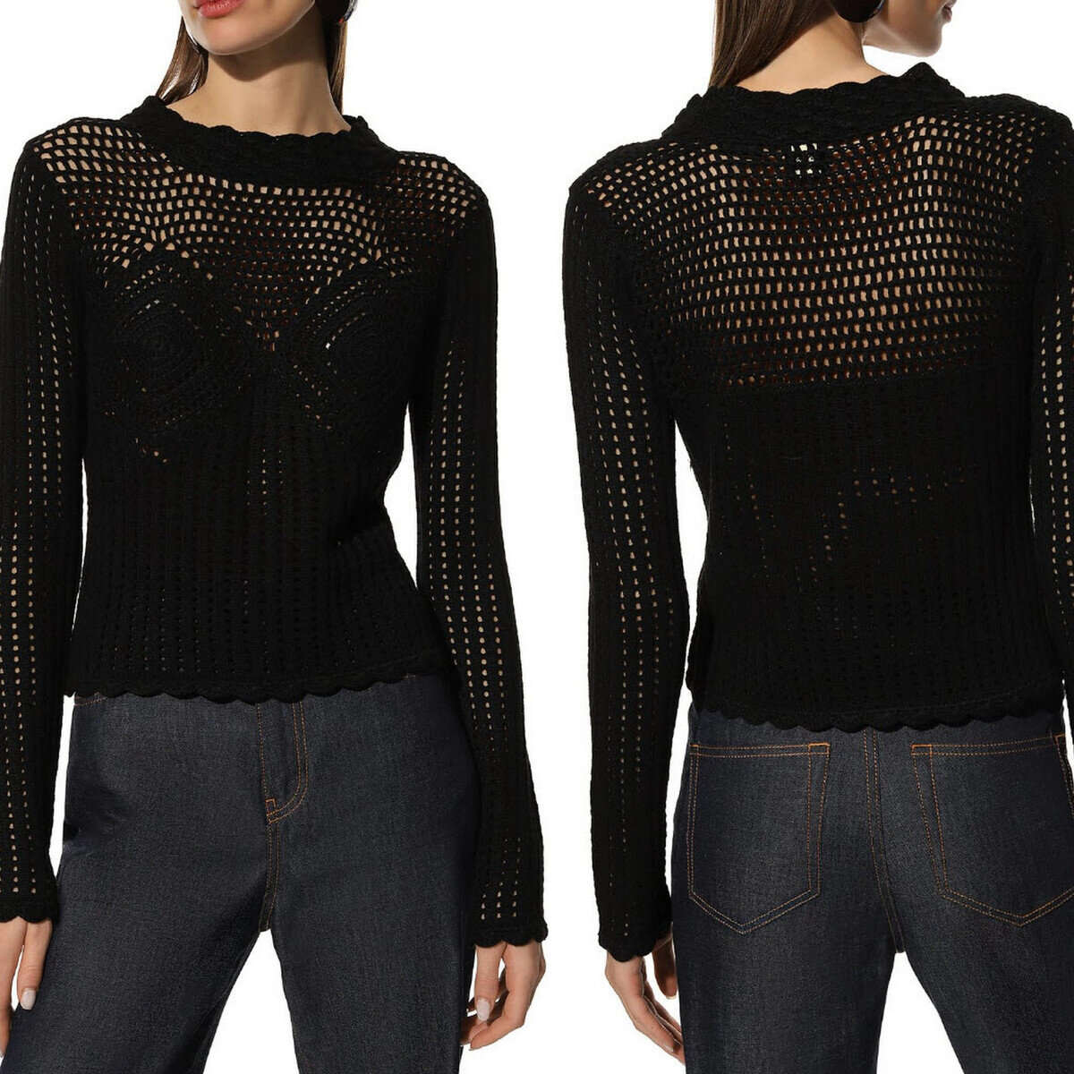 Состав сетчатого свитера: 39% вискоза, 30% полиамид, 3% кашемир, 28% полиэстер.
